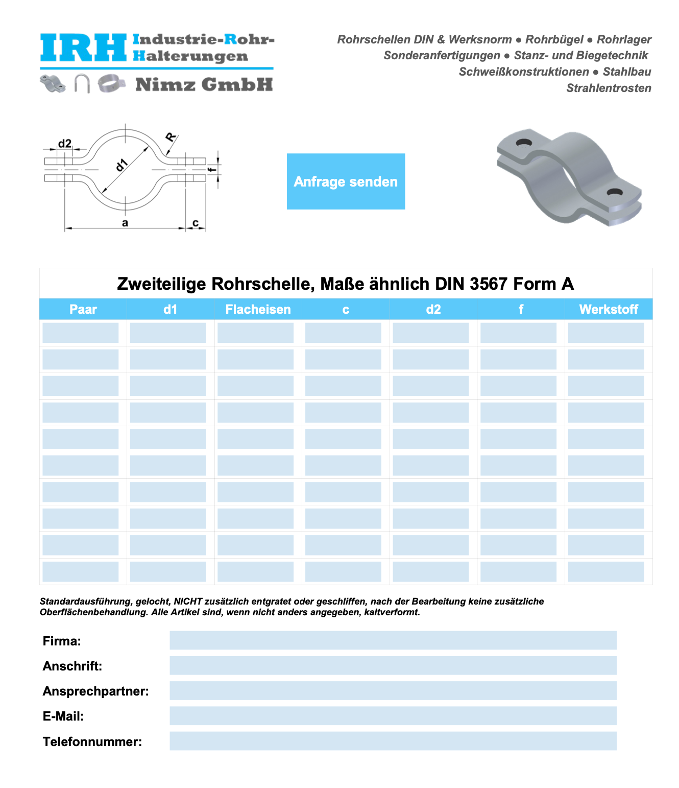 Als Spezialist auf dem Gebiet der Rohrbefestigungen stellen wir wunschgemäß alle Halterungsteile einbaufertig